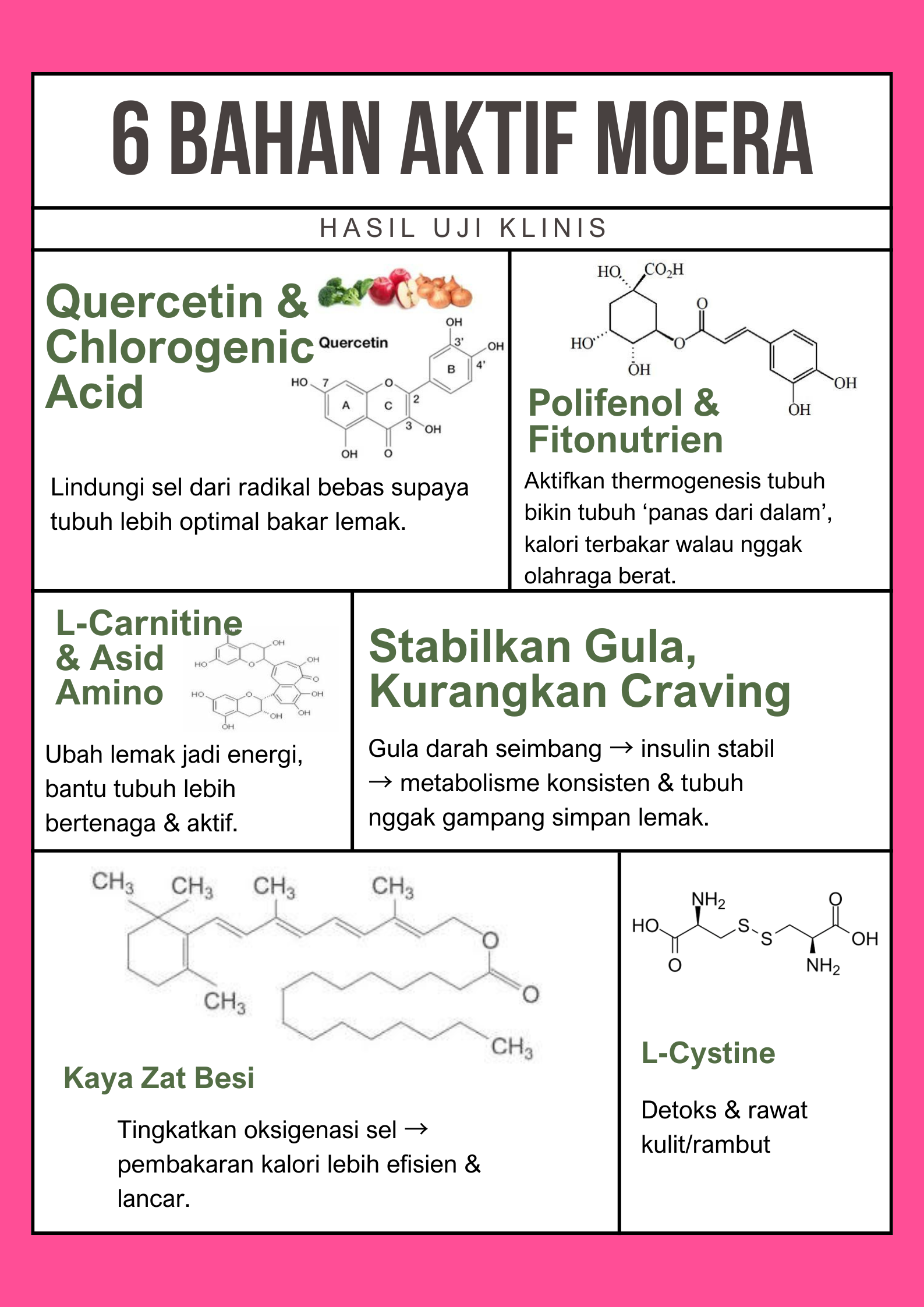 Karena Moera nggak cuma bantu bakar lemak, tapi juga bantu ngontrol nafsu makan tanpa harus puasa atau minum yang pahit-pahit.