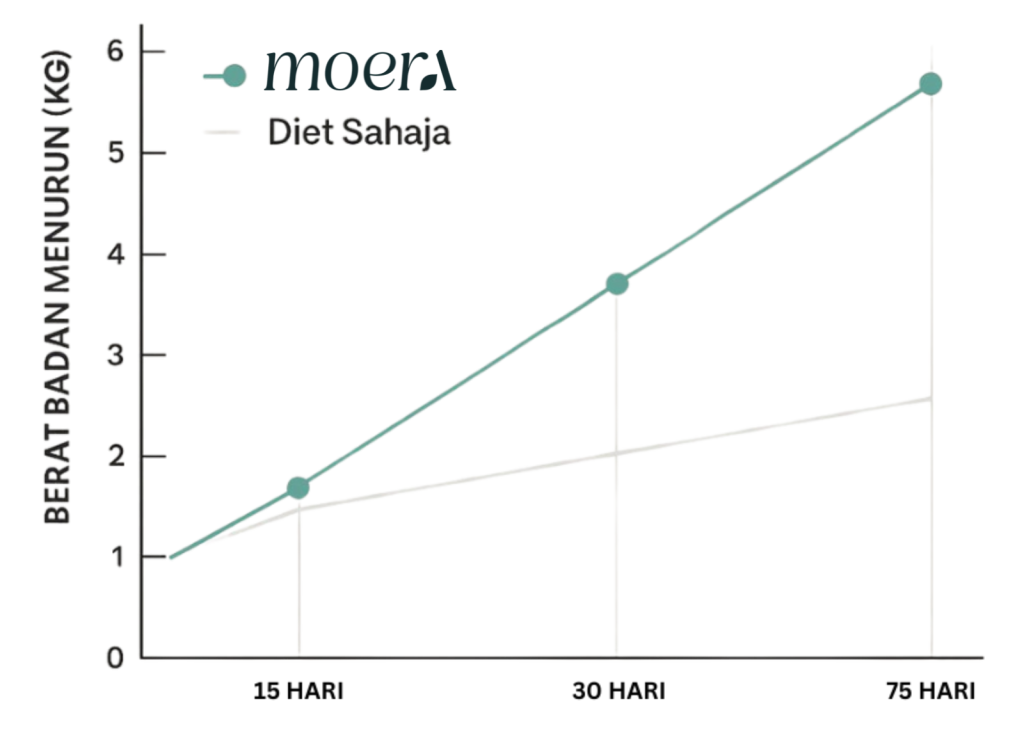 Pengguna Moera secara rutin menunjukkan penurunan berat badan hingga 4.2kg dalam 8 minggu.