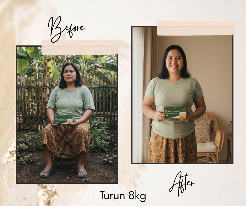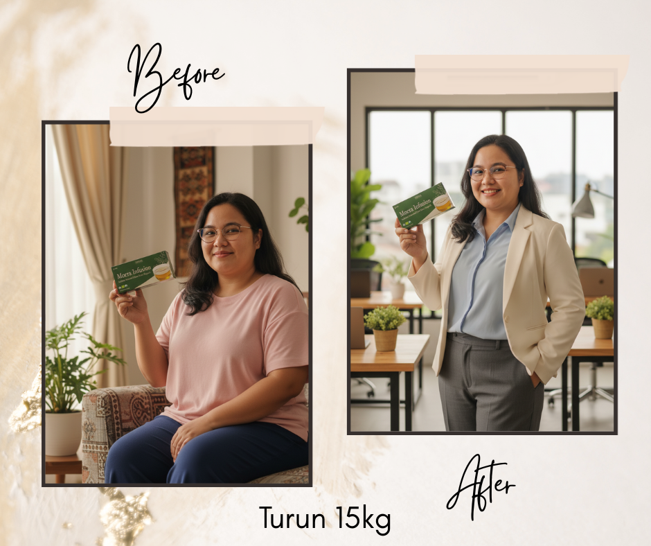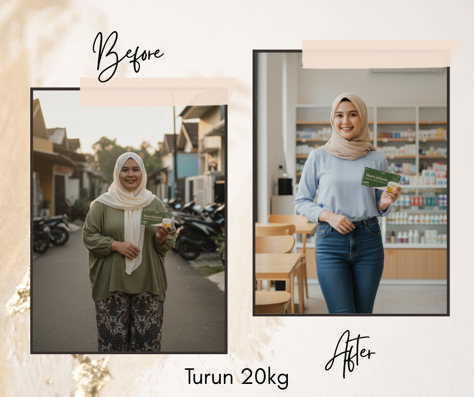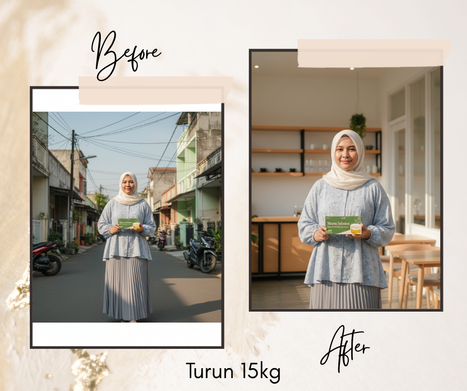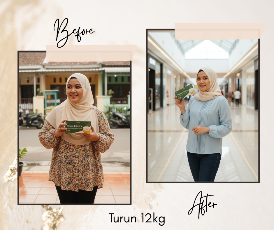 “Baru seminggu minum 2x sehari perut nggak begah, kulit cerahan, berat mulai turun. Temen-temen langsung bilang, ‘Kamu glowing banget sekarang!’